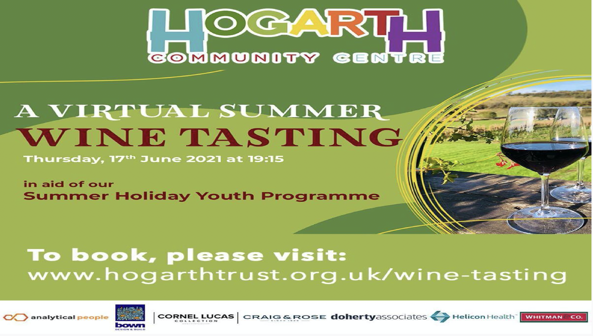 The Trustees and Friends of the Hogarth Charitable Trust warmly invite you to a Virtual Summer Wine Tasting on Thursday 17th June at 7:15pm.
